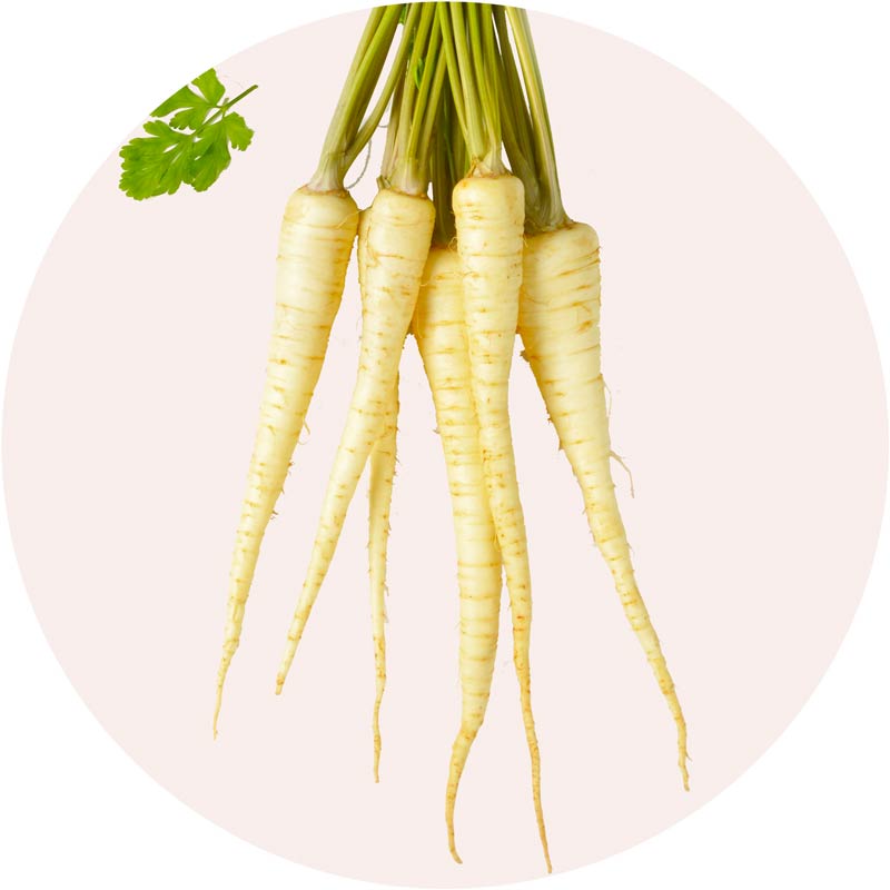 Das traditionelles Wurzelgemüse bringt ein natürliches Gehalt an Vitaminen und Mineralstoffen mit. Sie ergänzt die reduzierte Rezeptur durch ihre ausgewogene Nährstoffstruktur und bringt zugleich eine milde, leicht würzige Note in das Menü.