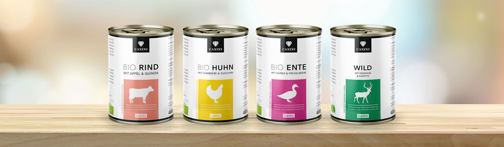 CANINI setzt auf Bio Zutaten in höchster Qualität und kombiniert Muskelfleisch mit ausgewählten pflanzlichen Komponenten zu klar aufgebauten Menüs.